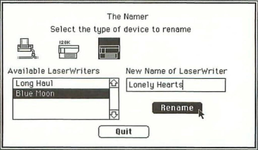 The solution: don’t let the name of any LaserWriter have any of those lengths! The Mac’s Namer utility was not yet finalized, so it could be changed to “fix” the bug. The next problem: no one wanted to have to tell LaserWriter administrators they couldn’t use certain seemingly random names.
